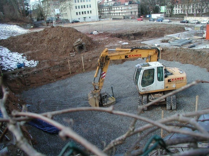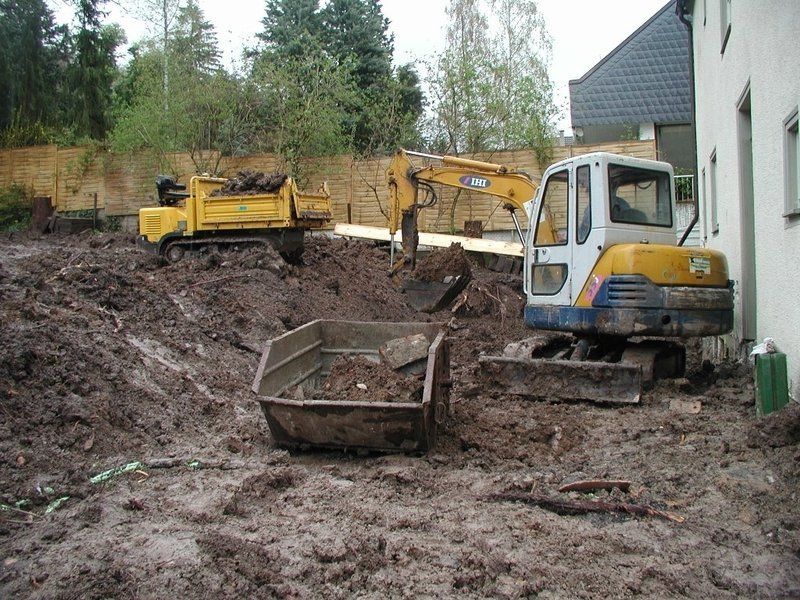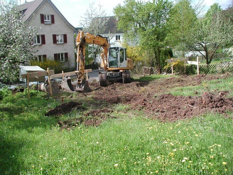 Der ausgehobene Boden wird auf eine Deponie oder zur Wiederverwendung abgefahren, Teile des Aushubs bleiben auch auf dem Grundstück für die Verfüllung des Arbeitsraumes oder für die spätere Gartengestaltung.