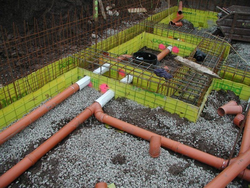 Damit die Feuchtigkeit aus der Erde nicht nach oben steigt, wird unter der Bodenplatte eine Schotter oder Kiesschüttung eingebaut. Manchmal wird diese Schotterschüttung durch Schaumglas ersetzt, um den Wärmeverlust nach unten zu unterbinden.