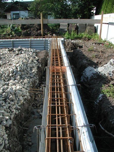 Die Außenwände im UG werden meist aus Beton hergestellt, entweder werden die Wände mit der Schalung auf der Baustelle eingeschalt und dann betoniert oder es kommen auch Fertigteile zum Einsatz, die dann ausbetoniert werden. Bei den Fertigteilen kann auch die Wärmedämmung bereits eingebaut sein.
